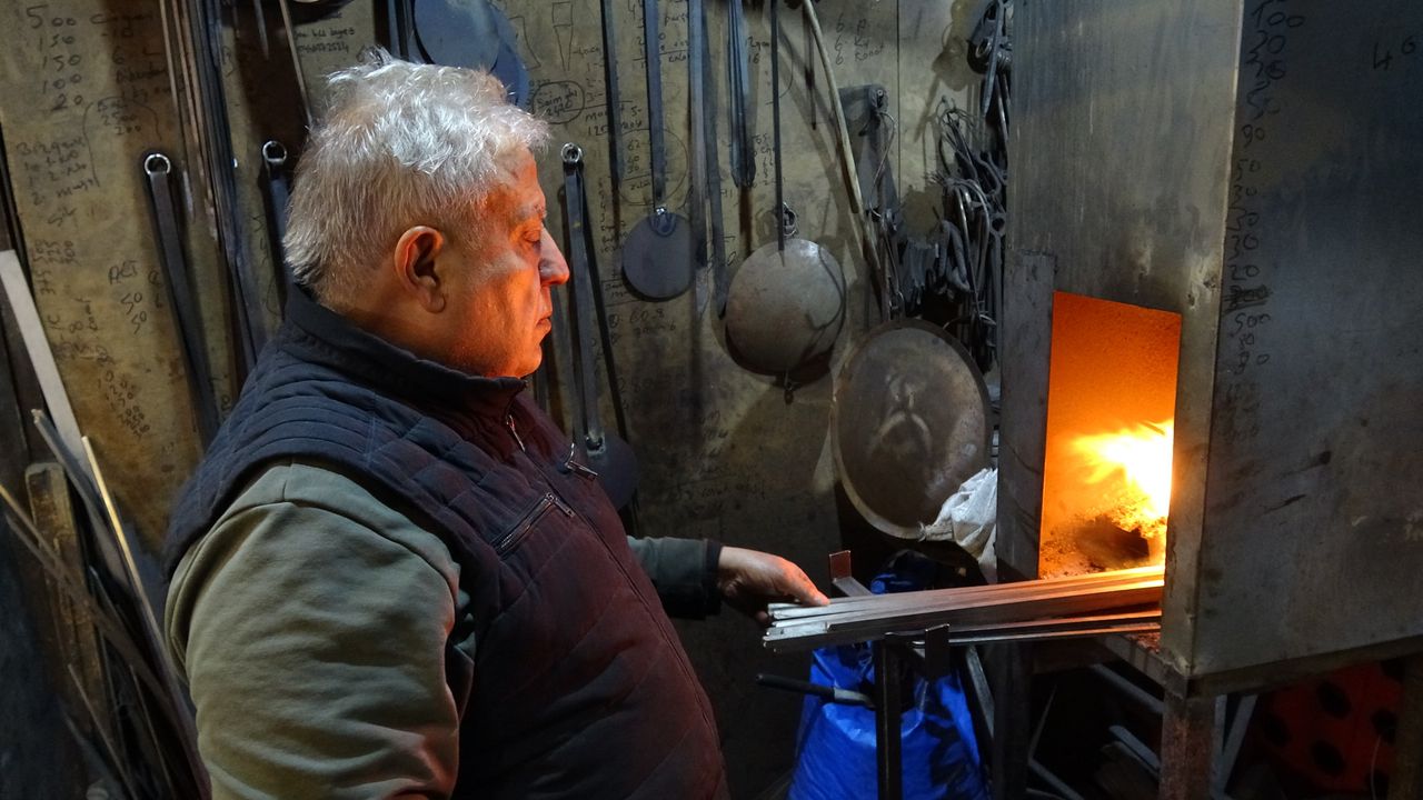 Şahinbey ilçesindeki tarihi Bakırcılar Çarşısı’nda çocuk yaşta babasından öğrendiği mesleğini 60 yıldır sürdüren sıcak demir ustası Erol Gürban, her sabah atölyesinin yolunu tutuyor. Küçük yaşlarda babasının yanında demirciliğin inceliklerini öğrenerek yetişen Gürban, sonraki yıllarda işin başına geçti. Çocuk yaşlarda öğrendiği işi için sabah erken saatlerde atölyesine gelen Gürban, ilk günkü heyecanla demir ocağını yakarak ateşin başına geçiyor.