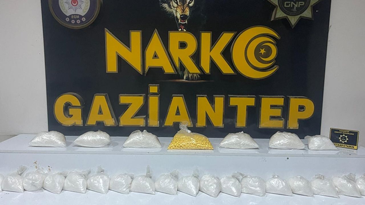 Gaziantep Emniyet Müdürlüğü'ne bağlı Narkotik Suçlarla Mücadele Şube Müdürlüğü ekipleri, Cumhuriyet Başsavcılığımız koordinesiyle şüphe üzerine bir aracı durdurdu. Durdurulan araçta hassas burunlu köpek destekli aramalarda valizler içerisine gizlenmiş halde 14 kilo 260 gram metamfetamin ile bin 320 adet extacy hap ele geçirildi. Olayla ilgili 2 şüpheli şahıs gözaltına alındı. Tamamlanan yasal işlemlerinin ardından adli mercilere sevk edilen 2 şüpheli tutuklandı.