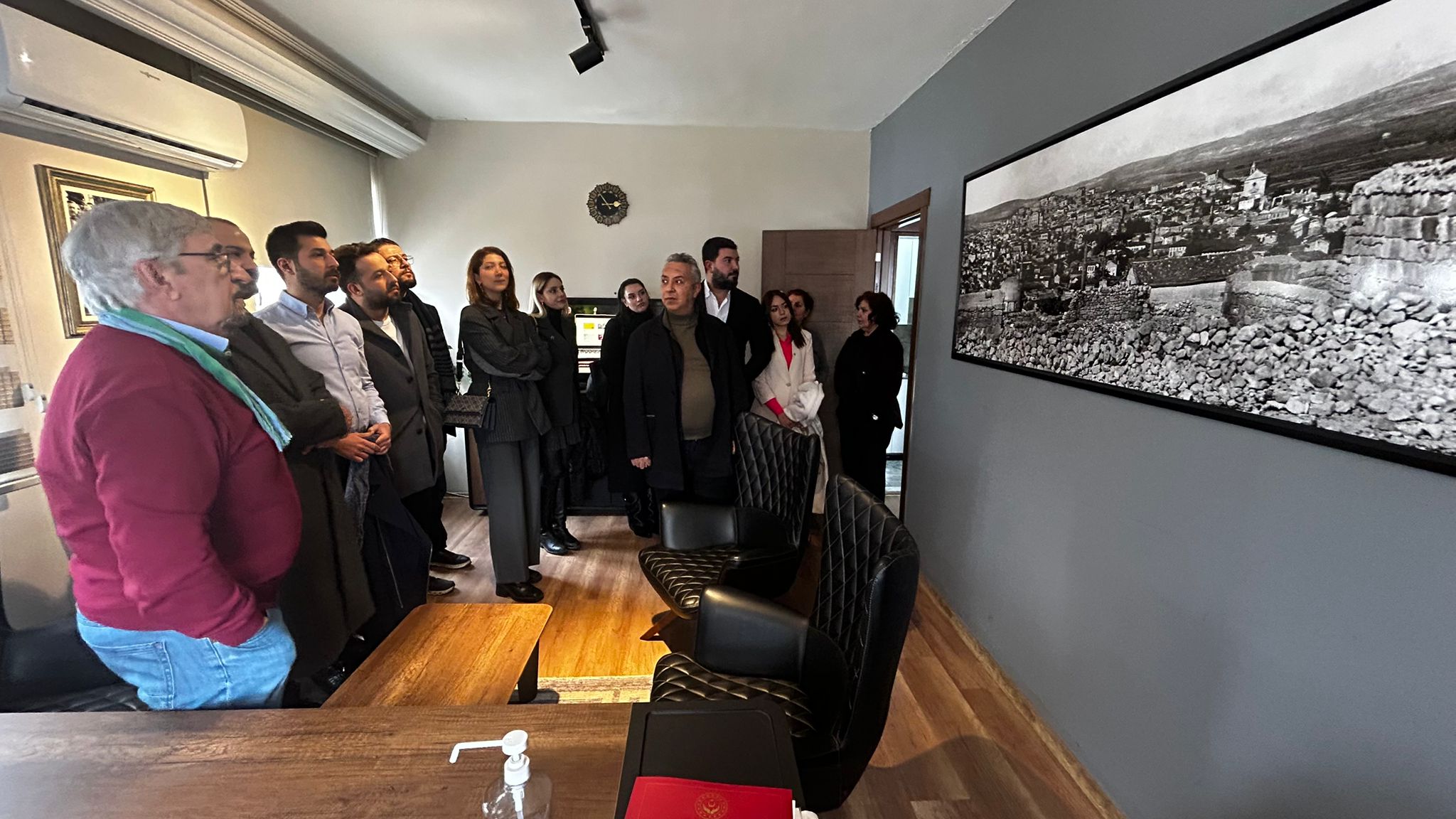 Mimarlar Odası Başkanı Mustafa Büyükuncu beraberinde Tülay Karadayı Yenice, Ela Damla Coşan, Ali Kemal Albayındır, Mehtap Gülçin Konukoğlu, Kemal Emre Şahin, Necmettin Soydinç, Rıdvan Ali Nokay, Çağrı Kılıç, Yaren İkizceli, Meyra Arık ile birlikte geldi. (Meral KINACILAR ERBEKTE, Leyla ÖZEKŞİ POLAT