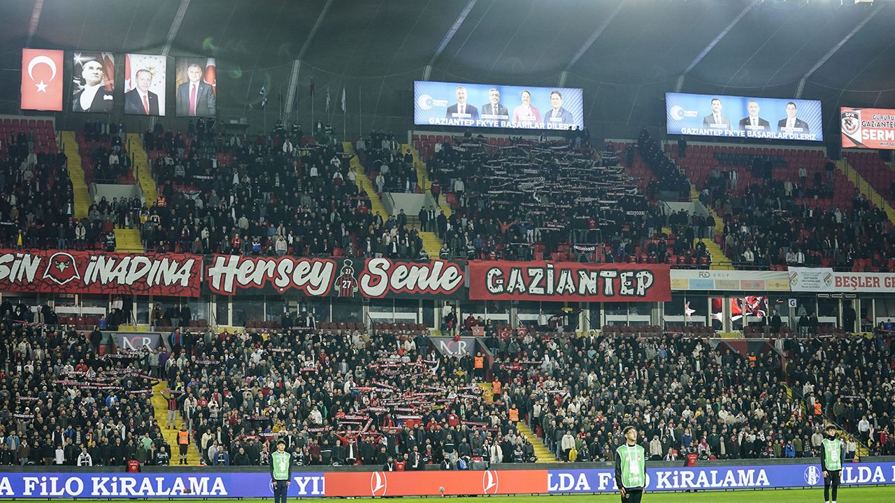 Gaziantep FKlı taraftarlar, Pazartesi günü geç saatte oynanmasına rağmen takımlarını bu zorlu maçta yalnız bırakmadı.