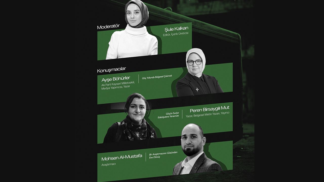 Göç olgusunu tüm gerçekliğiyle sinemanın gücüyle anlatacak, 13 Şubat Cuma günü düzenlenecek gösterim öncesi alanında uzman isimlerin katılımıyla saat 15.00’te Büyükşehir Belediyesi Şehir Tiyatrosu - Onat Kutlar Sahnesi’nde Göç, Hafıza ve Dönüş Paneli yapılacak. Ardından Kilis Öncüpınar Sınır Kapısı’nda başlayıp Şam, Humus ve Halep’te devam eden Yeşil Otobüs belgesel filmi ilk kez sahnelenecek. Panel, editör Şule Kalkan’ın moderatörlüğünde AK Parti Kayseri Milletvekili, medya yapımcısı, yazar Ayşe Böhürler’in, "Göç Yolunda Belgesel Çekmek" konuşmasıyla başlayacak. Sonrasında yazar, belgesel metin yazarı, yayıncı Peren Birsaygılı Mut tarafından, "Göçün Suriye Edebiyatına Yansıması", araştırmacı Mohsen Al-Mustafa ise "Bir Araştırmacının Gözünden Eve Dönüş" konulu konuşma başlıklarını konuşacak.