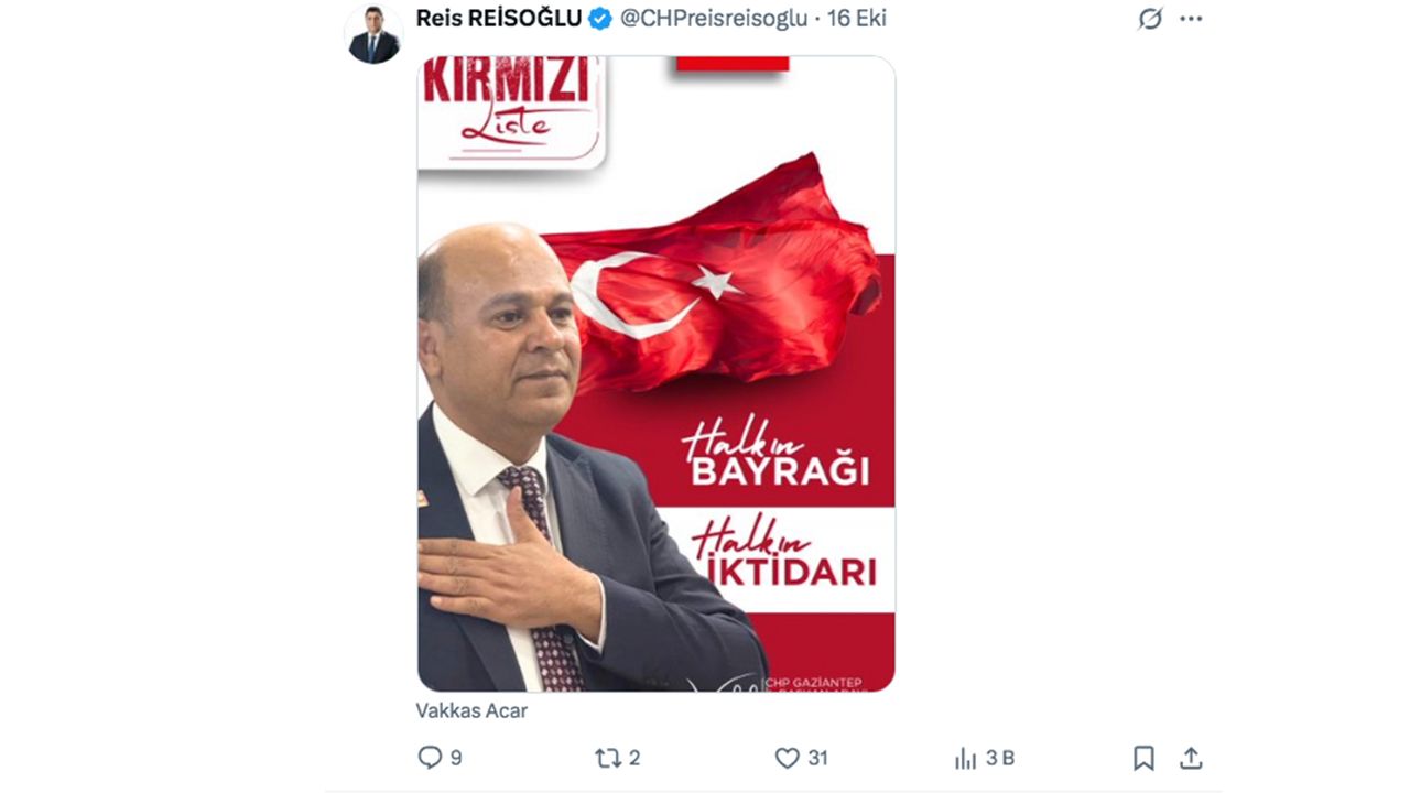 Pazar günü sandık başına gidecek olan CHP’de il başkanı Reis Reisoğlu, tarafını belli etti. Karaca Bozgeyik ve Vakkas Acar’ın yarışacağı kongrede il başkanı Reisoğlu’nun çıkışı tepki gösterdi.