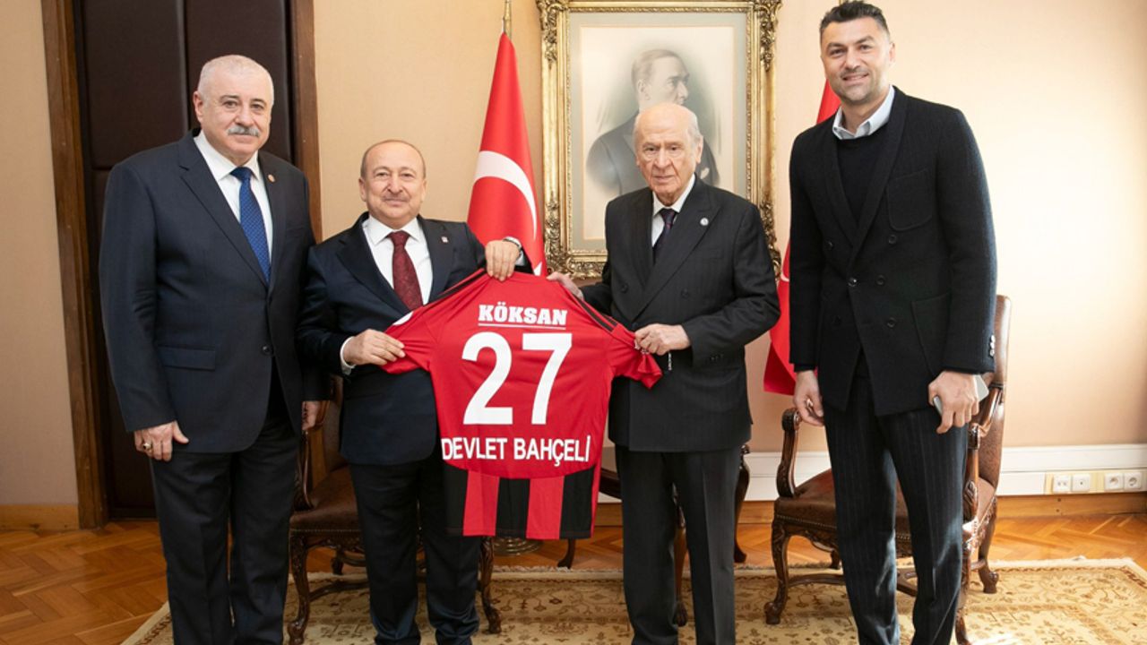 Bu ziyarette Türk futbolunun genel sorunları konuşurken Başkan Memik Yılmaz takım hakkında ise Bahçeli’ye bilgi verdi. Daha başkan Memik Yılmaz ve teknik direktör Burak Yılmaz, Bahçeli’ye ismi yazılı 27 numaralı forma hediye etti. MHP Genel Başkanı Devlet Bahçeli ise bu ziyaretten duyduğu memnuniyeti dile getirerek Gaziantep Futbol Kulübüne başarılar dileğinde bulundu..