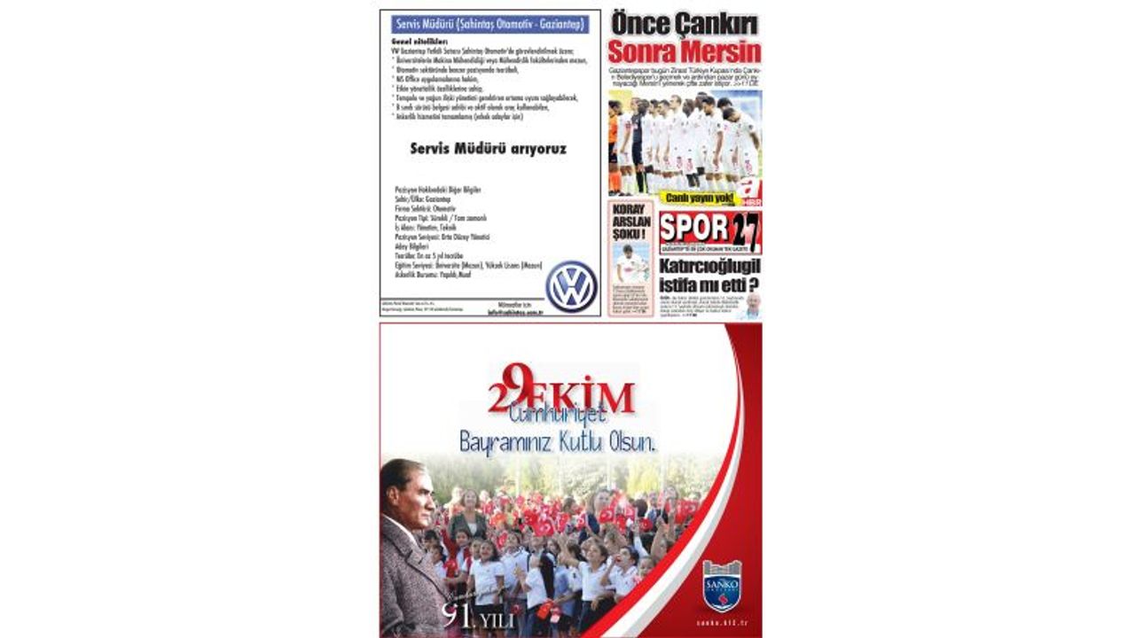 29 EKİM 2014 ÇARŞAMBA SAYFALARI