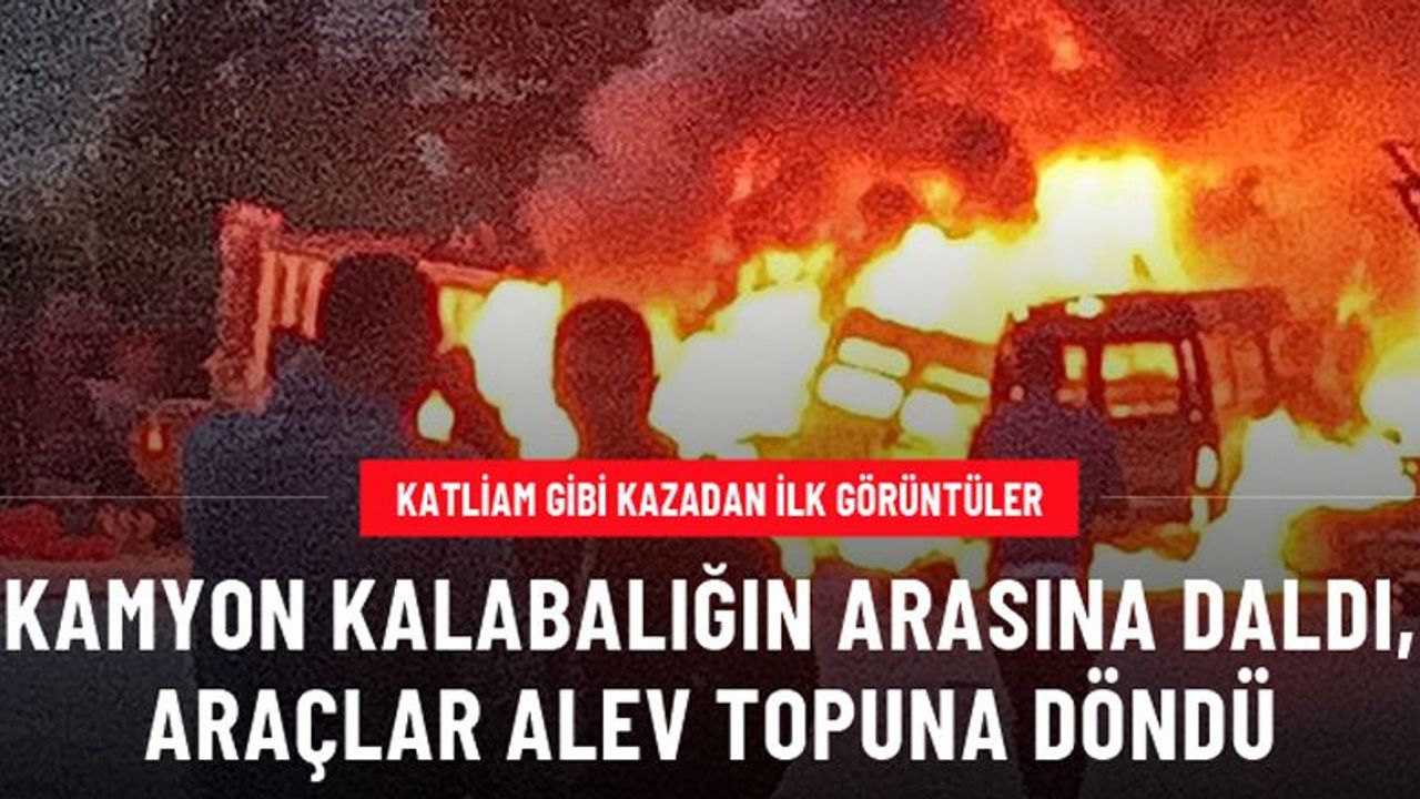 Kamyon kalabalığın ortasına daldı, Araçlar alev topuna döndü