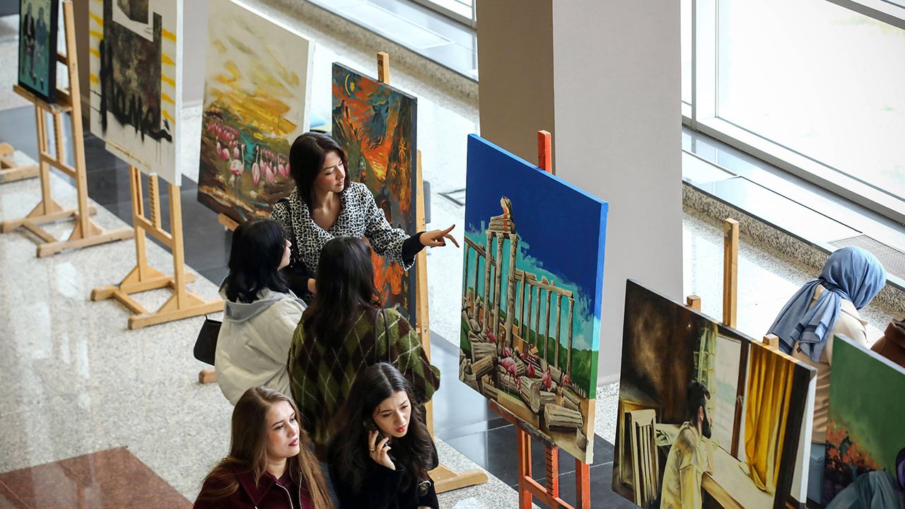 GAÜN Mavera Kongre ve Sanat Merkezi’nde sanatseverlerle buluşan sergide; Geleneksel Türk Sanatları Bölümü Halı Tasarımı Programı, Grafik Sanatlar Bölümü, Film Tasarımı ve Yönetimi Bölümü, Resim Bölümü, Seramik ve Cam Bölümü ile Tekstil ve Moda Tasarımı Bölümü öğretim elemanları ve öğrencilerine ait 100’ün üzerinde eser yer alıyor. Etkinlik kapsamında ayrıca, GAÜN Güzel Sanatlar Fakültesi Film Tasarımı ve Yönetimi Bölümü öğrencileri tarafından hazırlanan kısa filmler de izleyicilerin beğenisine sunuldu.