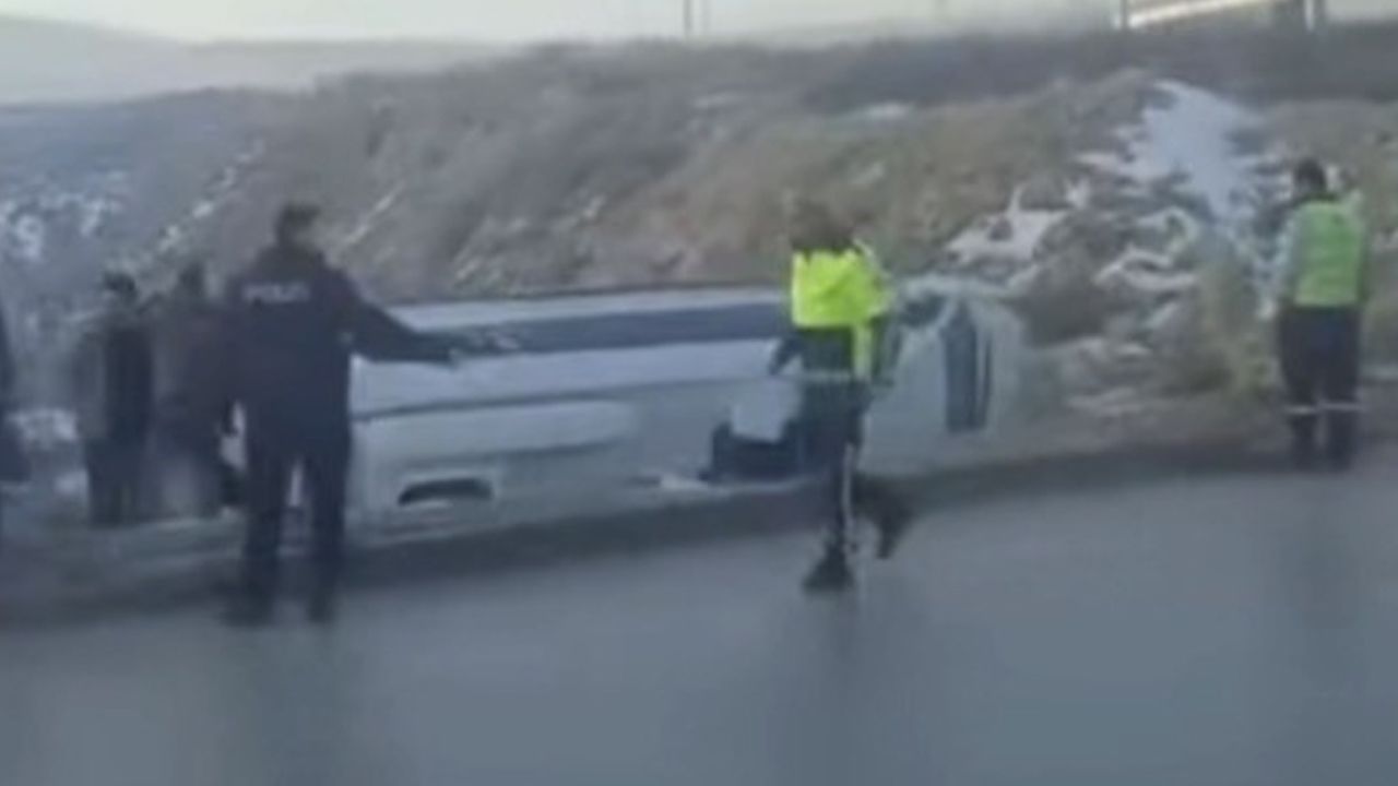 Gaziantep'te gizli buzlanma nedeniyle kayganlaşan yolda kontrolden çıkan işçi servisinin şarampole devrilmesi sonucu 10 işçi yaralandı.