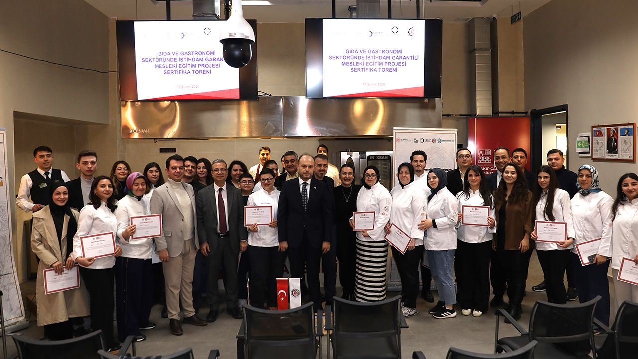 Deprem, pandemi ve göç gibi zorluklardan etkilenen 18-35 yaş arası kadın ve gençlerin gastronomi sektöründe nitelikli istihdama kazandırılmasını hedefleyen proje kapsamında; Milli Eğitim Bakanlığı (MEB) onaylı müfredat ile 4 ay teorik eğitim ve sonrasında GTO üyesi işletmelerde 4 ay süren uygulamalı staj dönemiyle birlikte eğitimlerini başarıyla tamamlayan ve gastronomi sektöründe istihdamı sağlanan kursiyerler için sertifika töreni düzenlendi.