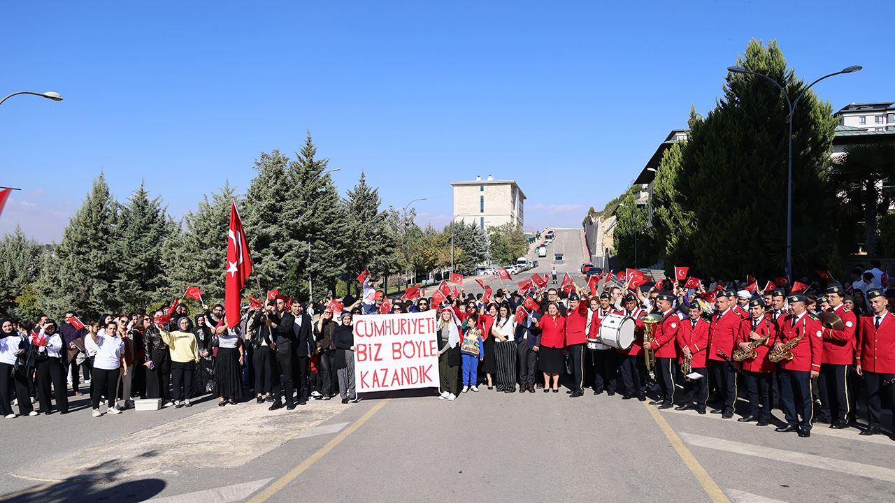 Cumhuriyet coşkusunun kampüsün her köşesine yayıldığı etkinlik, HKÜ kampüs girişinden başlayan Gaziantep Büyükşehir Belediyesi Bando Takımı eşliğindeki Cumhuriyet Yürüyüşüyle başladı. Yürüyüşün ardından kutlama programı, HKÜ Kongre ve Kültür Merkezi’nde devam etti. Programa, HKÜ Rektör Vekili Prof. Dr. Gül Rengin Küçükerdoğan, Eğitim Fakültesi Dekanı Prof. Dr. Latife Özaydın, akademik ve idari personel, öğrenciler ile TOBB Fen Lisesi öğretmen ve öğrencileri katıldı.