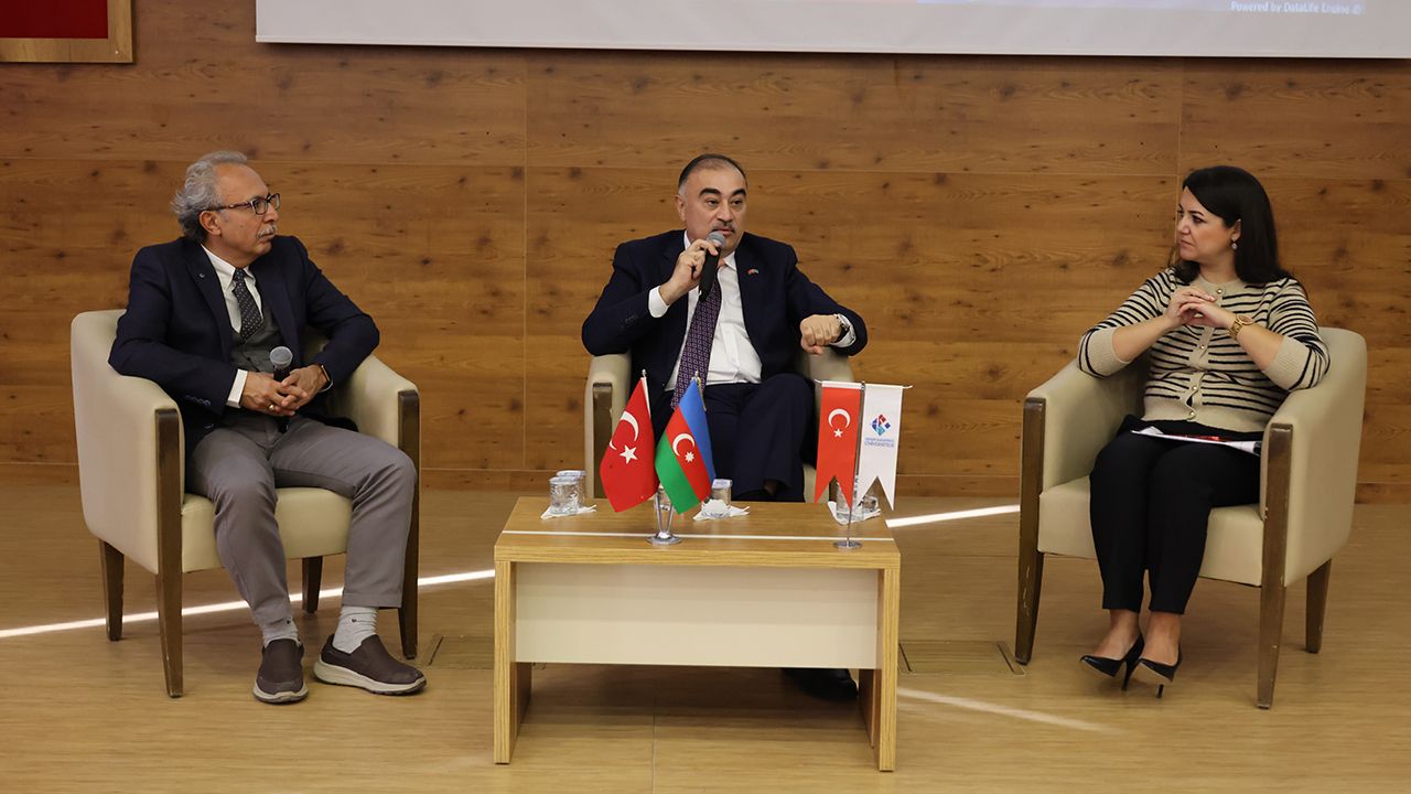 HKÜ Hukuk Amfi’de düzenlenen programa, HKÜ Rektör Vekili Prof. Dr. Gül Rengin Küçükerdoğan, Büyükelçilik Müsteşarı Dr. Fuzuli Macidli, HKÜ Genel Sekreteri Ümit Şahnaoğlu, HKÜ İktisadi, İdari ve Sosyal Bilimler Fakültesi (İİSBF) Dekanı Prof. Dr. Hanifi Aslan, İİSBF Siyaset Bilimi ve Uluslararası İlişkiler Bölümü Başkanı Prof. Dr. Ahmet Keser, Prof. Dr. Ramin Aliyev, akademisyenler ve öğrenciler katıldı. Moderatörlüğünü Prof. Dr. Ahmet Keser ve HKÜ Siyaset Bilimi ve Uluslararası İlişkiler Bölümü’nden Dr. Öğr. Üyesi Pelin Aliyev’in üstlendiği programda, Keser, Türkiye ve Azerbaycan arasındaki yakınlığın yalnızca diplomatik ilişkilerden ibaret olmadığını, iki milletin tarihi kardeşliğinin bugün stratejik ortaklıkla taçlandığını bir kez daha vurgularken, Aliyev ise Türkiye ile Azerbaycan’ın ‘iki devlet, bir millet’ anlayışıyla tarihten geleceğe uzanan güçlü kardeşliğini kararlılıkla sürdürdüğünü ifade etti.