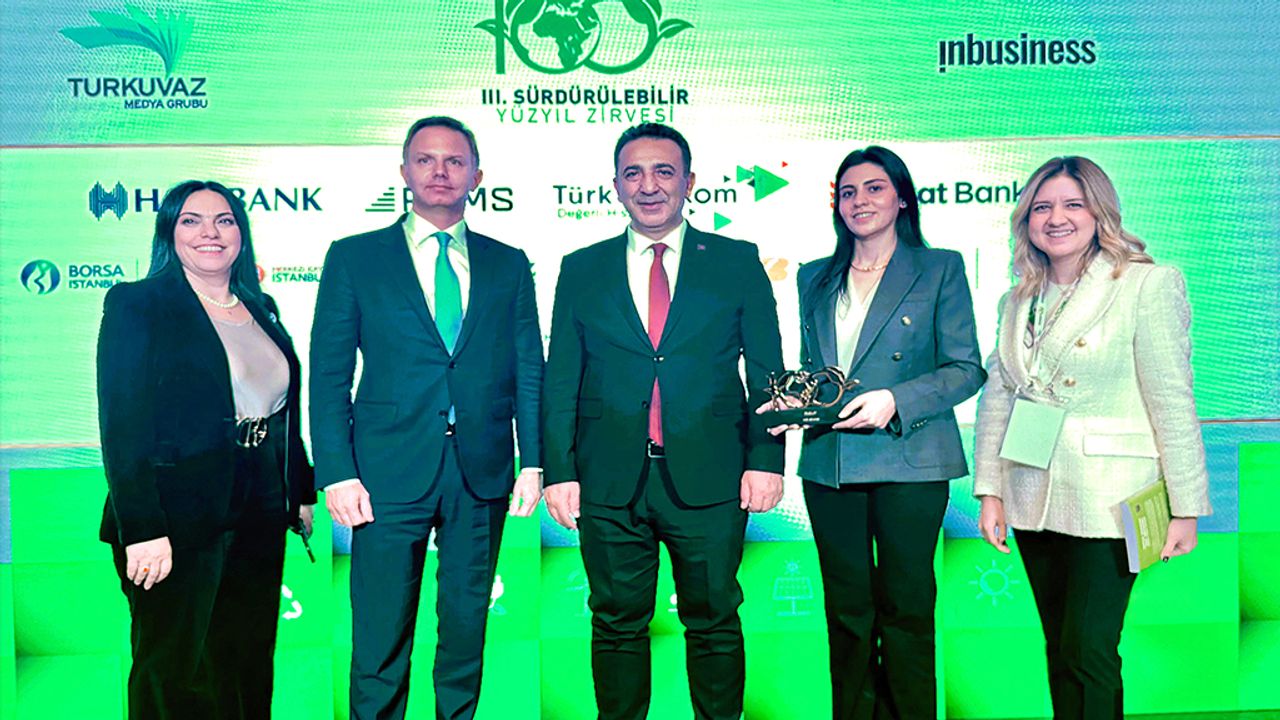 Sürdürülebilirlik alanında iyi uygulamalar geliştiren, dönüşüme öncülük eden kurum ve liderlerin değerlendirildiği ödüller, III. Sürdürülebilir Yüzyıl Zirvesi kapsamında düzenlenen törende sahiplerini buldu. Törende ödül, T.C. Çevre, Şehircilik ve İklim Değişikliği Bakanlığı İklim Değişikliği Başkanı Prof. Dr. Halil Hasar tarafından RE&UP Büyüme ve Stratejiden Sorumlu Direktörü Engin Mete ile Büyüme ve Stratejiden Sorumlu Kıdemli Yöneticisi Gözde Konukoğlu’na takdim edildi.