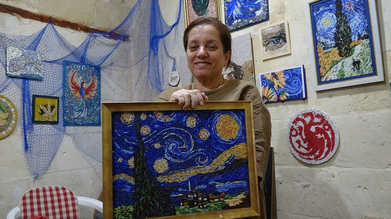 Mozaik sanatçısı Ayşegül Yener, Şahinbey ilçesindeki tarihi Gümrük Han'da açtığı atölyesinde cam ve mermer taşlardan mozaik tablolar üretiyor. Bin bir emek ve zahmet vererek özel yöntemle ürettiği mozaikleri büyük ilgi gören eserlere dönüştüren Yener, 5 yıldır mozaik sanatıyla ilgileniyor. Hobi amaçlı yağlı boya tablolar çalışırken 5 yıl önce de profesyonel olarak mozaik yapmaya başlayan Yener, atölyesinde mozaiğin tüm aşamalarını tek başına yapıyor. Bir santimetre kalındığındaki cam ve mermer mozaikleri atölyesinde sanat eserlerine dönüştüren Yener, eserlerini de mozaik severlere satıyor.