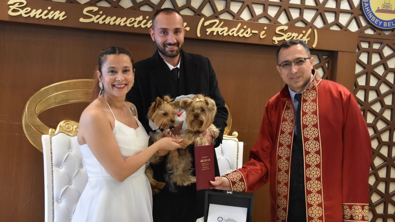 Şahinbey Belediyesi Evlendirme Memurluğuna başvuran Dilek Öztürk ile Hakan Özbek, nikah salonuna gelinlik ve damatlık giydirdikleri Yorkshire teriyeri cinsi köpekleri ile geldi. Gelin ve damadın kucağında gelinlik ve damatlık giyen köpekleri gören davetliler, uzun süre şaşkınlıklarını gizleyemedi. "Barney" ve "Betty" ismini verdikleri köpekleri ile nikah masasına oturan Dilek ve Hakan çiftinin nikah akdi Şahinbey Belediyesi tarafından yapıldı.