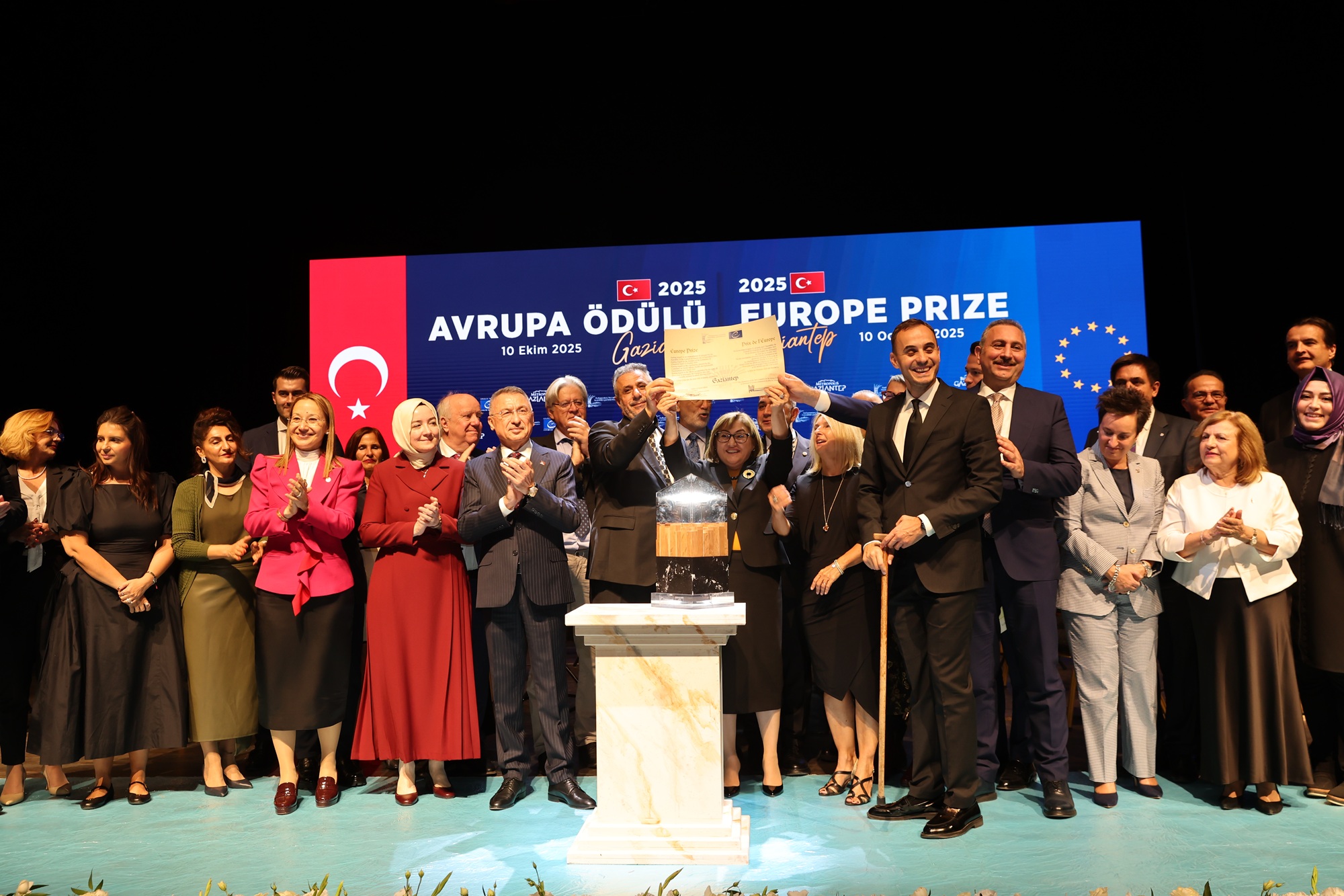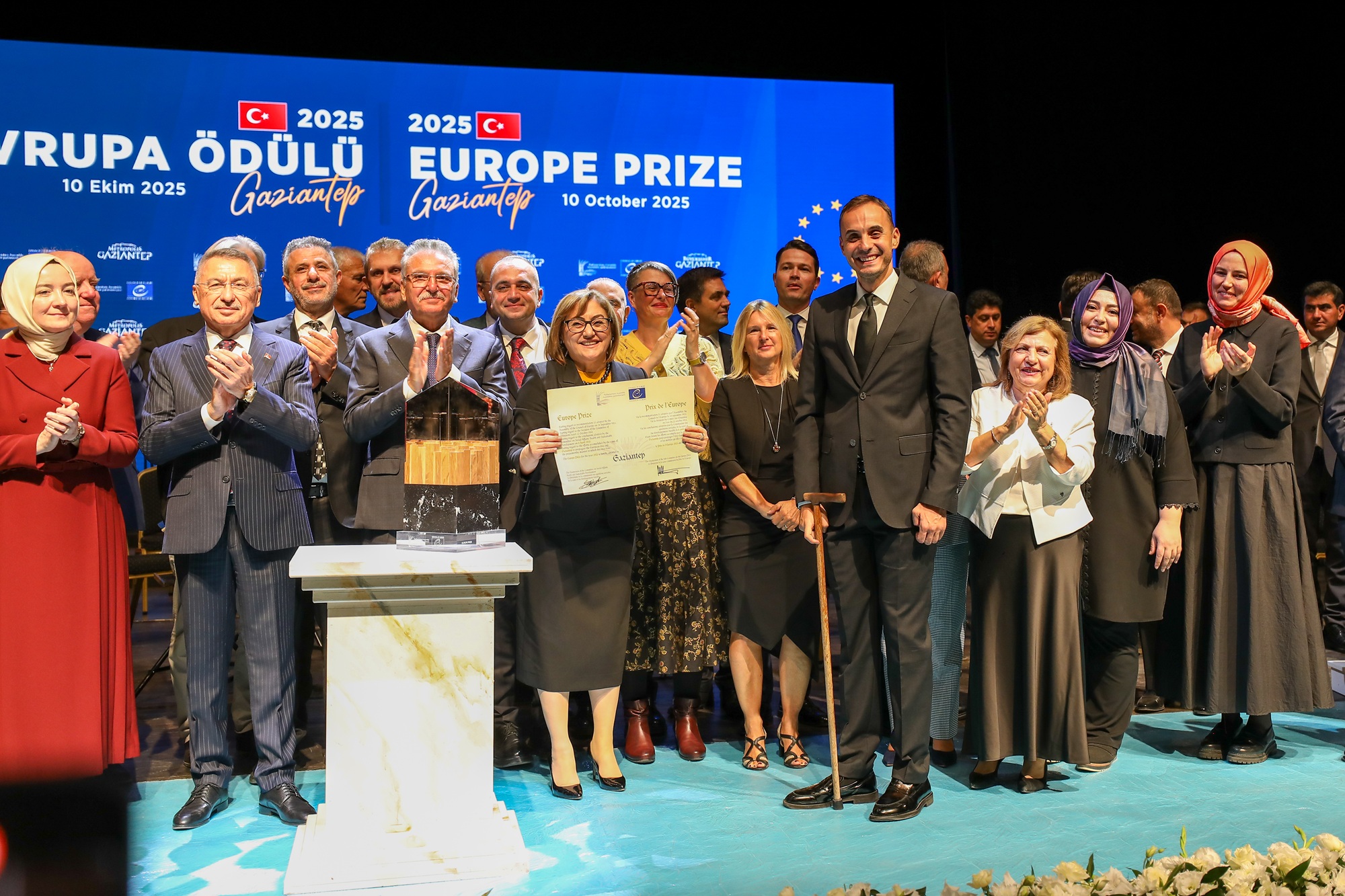 TBMM Dışişleri Komisyonu Başkanı ve 1. Dönem Cumhurbaşkanı Yardımcısı Fuat Oktay, törende yaptığı konuşmada, Gaziantep’in kardeşlik, dayanışma ve üretim anlayışıyla Avrupa Ödülü’nü hak ettiğini aktardı. Oktay, Gaziantep Büyükşehir Belediye Başkanı Fatma Şahin’i ve ekibini tebrik ederek, “Gaziantep’te müthiş bir ekip var. Bakanlarımız, milletvekillerimiz, belediye başkanlarımız, sivil toplum kuruluşlarımız ve vatandaşlarımız tek ses olmuş durumda. O ses kardeşlik sesi. Gaziantep bu ruhla bu ödülü fazlasıyla hak etti” dedi.