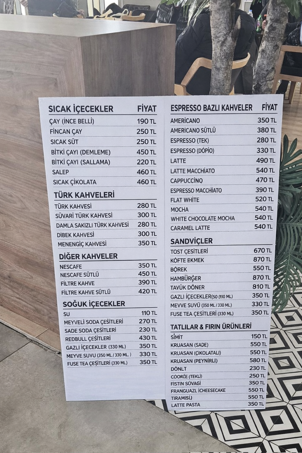 İstanbul uçağını beklerken karşılaştığı fiyat listesini sosyal medya hesabından paylaşan Özekşi, özellikle çay ve kahve fiyatlarının dikkat çekici seviyelere ulaştığını ifade etti.