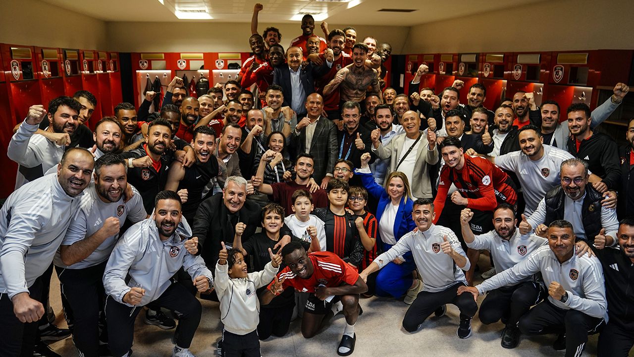 Yöneticilerle birlikte soyunma odasına inen başkan Memik Yılmaz, 120 bin TL olan galibiyet primini 200 bin TL yapınca çoşku ve sevinç daha da tavan yaptı. Başkanın etrafından kenetlenen futbolcular daha sonra galibiyet pozu verirken ortaya oldukça güzel görüntüler çıktı. Öte yandan önümüzdeki Pazartesi akşamı oynanacak Fenerbahçe maçının galibiyet priminin ise 300-400 bin arasında olması olabileceği iddia edildi. Spor Servisi