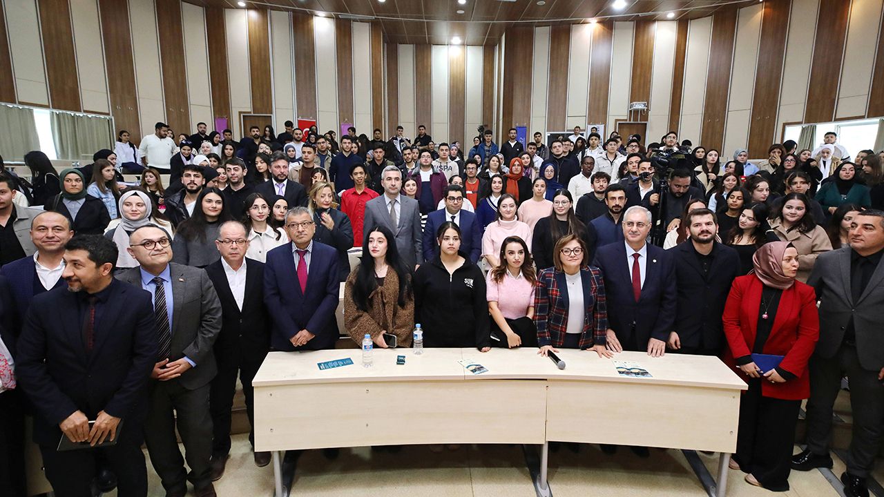 İİBF Dekanı Prof. Dr. Yakup Bulut ise konuşmasında Fatma Şahin’in bilim ve teknolojiye önem veren ve şehre birçok ilki kazandıran bir yönetici olduğunu vurguladı. Öğrencilerin böyle bir isimden tecrübeler edinmesinin büyük bir fırsat olduğunu ifade eden Bulut, katılımı için Şahin’e teşekkür etti. Gaziantep Büyükşehir Belediye Başkanı Fatma Şahin söyleşide 15 yıllık özel sektör tecrübesi ile 25 yıllık milletvekilliği, kurucu bakanlık ve belediye başkanlığı deneyimlerini öğrencilerle paylaştı. Şahin, konuşmasında teknolojinin ve bilimin önemine dikkat çekerek, yeşil dönüşüm ve sürdürülebilirliğin günümüz dünyasında öncelikli bir sorumluluk olduğunu vurguladı. Okumanın, bilgiye ulaşmanın ve medeniyet birikimimizden güç alarak ilmi ileriye taşımanın önemine değinen Şahin, gençlerin yeni dünyaya entegre olmasının gerekliliğini aktardı. Eğitim, spor ve bilim alanında yapılan yeniliklerin, Gaziantep’i daha ileriye taşıdığını belirten Şahin, bu sürecin gençlerle birlikte yürütülmesinin hem kenti hem de ülkeyi kalkındırmanın anahtarı olduğunu ifade etti.