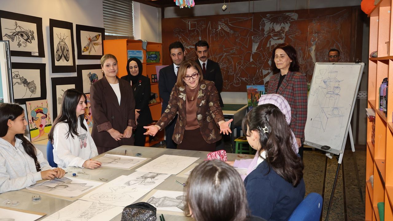 Atölyelerin devam ettiği Kahraman Emmioğlu Kültür ve Sanat Merkezi’nde kursiyerlerle bir araya gelen Başkan Fatma Şahin, piyano, keman ve resim eğitimi alan çocukların çalışmalarını yakından inceleyerek performanslarını izledi. Çocuklarla samimi bir sohbet gerçekleştiren Başkan Şahin, kurslarla ilgili sorular sorarak düşünce ve görüşlerini dinledi. Ziyaret kapsamında atölyelere katılan çocuklarla bol bol hatıra fotoğrafı çektiren Şahin, tüm öğrencilere başarılar diledi.