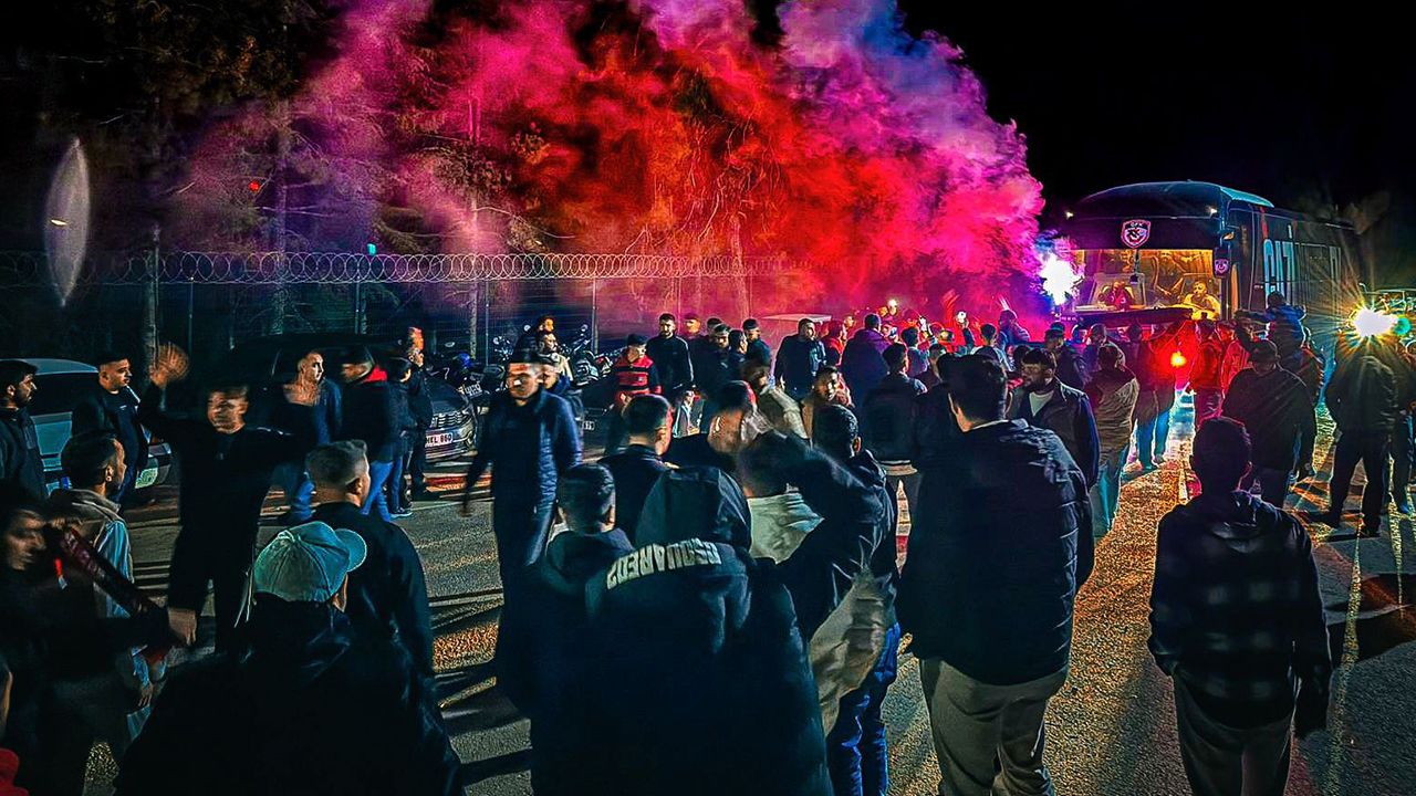 Kayserispor karşısında alınan 3-0’lık farklı galibiyetin ardından kırmızı-siyahlı taraftarlar tesise akın ederek tanıkları meşale ile karşıladı.