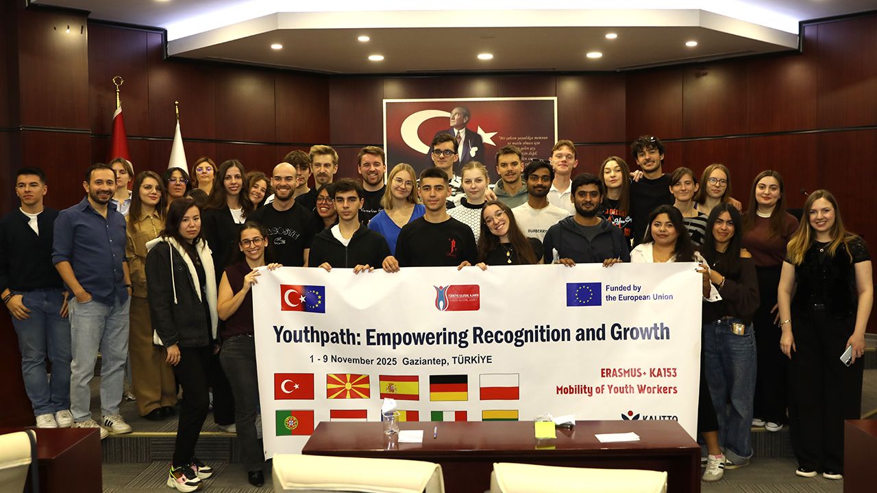 Gaziantep Ticaret Odası ve Hasan Kalyoncu Üniversitesi iş birliğinde gerçekleştirilen etkinlikte Avrupa Birliğinin en fazla ilgi çeken programlarından biri olan Erasmus+ kapsamında 10 farklı ülkeden Gaziantep’e gelen öğrenciler Türk öğrencilerle buluşturuldu. Etkinliğin açılış konuşmasını gerçekleştirerek Gaziantep ve Gaziantep Ticaret Odası hakkında etkinlik katılımcısı öğrencileri bilgilendiren GTO Genel Sekreter Yardımcısı Gülbin Çalışkantürk, “Gaziantep, Türkiye’nin en dinamik şehirlerinden biri olarak girişimci ruhu ve güçlü sanayi altyapısıyla tanınmaktadır. Şehrimiz aynı zamanda tarih, kültür ve yeniliğin bir araya geldiği bir şehir. Yaratıcılığın, gastronominin ve iş birliğinin şehri olan Gaziantep, geçmiş ile geleceği birbirine bağlayan gerçek bir köprüdür. Gaziantep Ticaret Odası olarak bizler de 40 bini aşkın üyemizin rekabet gücünü artırmak, yenilikçiliği ve dijital dönüşümü teşvik etmek, uluslararası iş birliklerini geliştirmek için çalışıyoruz. Ulusal ve AB destekli projelerimiz aracılığıyla daha sürdürülebilir, kapsayıcı ve girişimci bir bölgesel ekonomi inşa etmeyi hedefliyoruz.” ifadelerini kullandı.
