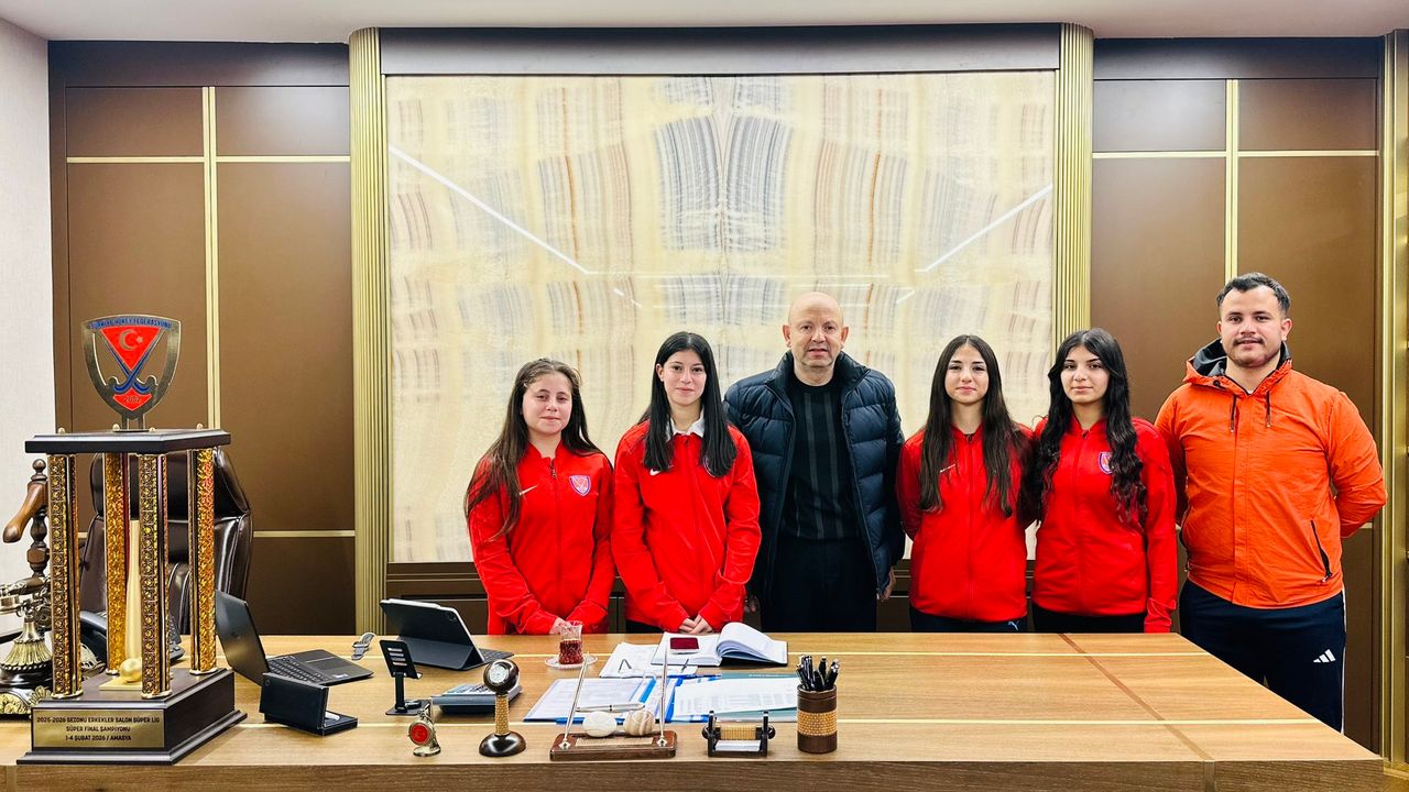 Milli takım kampına seçilen sporcular ve Volkan Group Spor Kulübü Bayan Takımı Antrenörü Müslüm Kaya, Kulüp Başkanı Bilal Çeker’i makamında ziyaret etti. Ziyarette konuşan Kulüp Başkanı Bilal Çeker, genç sporculara ve kadın sporuna verdikleri önemi vurgulayarak şu ifadeleri kullandı “Her daim kızlarımızın ve evlatlarımızın yanında olmaya devam edeceğiz. Şehrimizin sporda en iyi yerlerde olması için Volkan Group Spor Kulübü olarak misyonumuz; güçlü gelecek, güçlü gençliktir. Bu doğrultuda mücadelemizi kararlılıkla sürdüreceğiz” diye konuştu. Spor Servisi