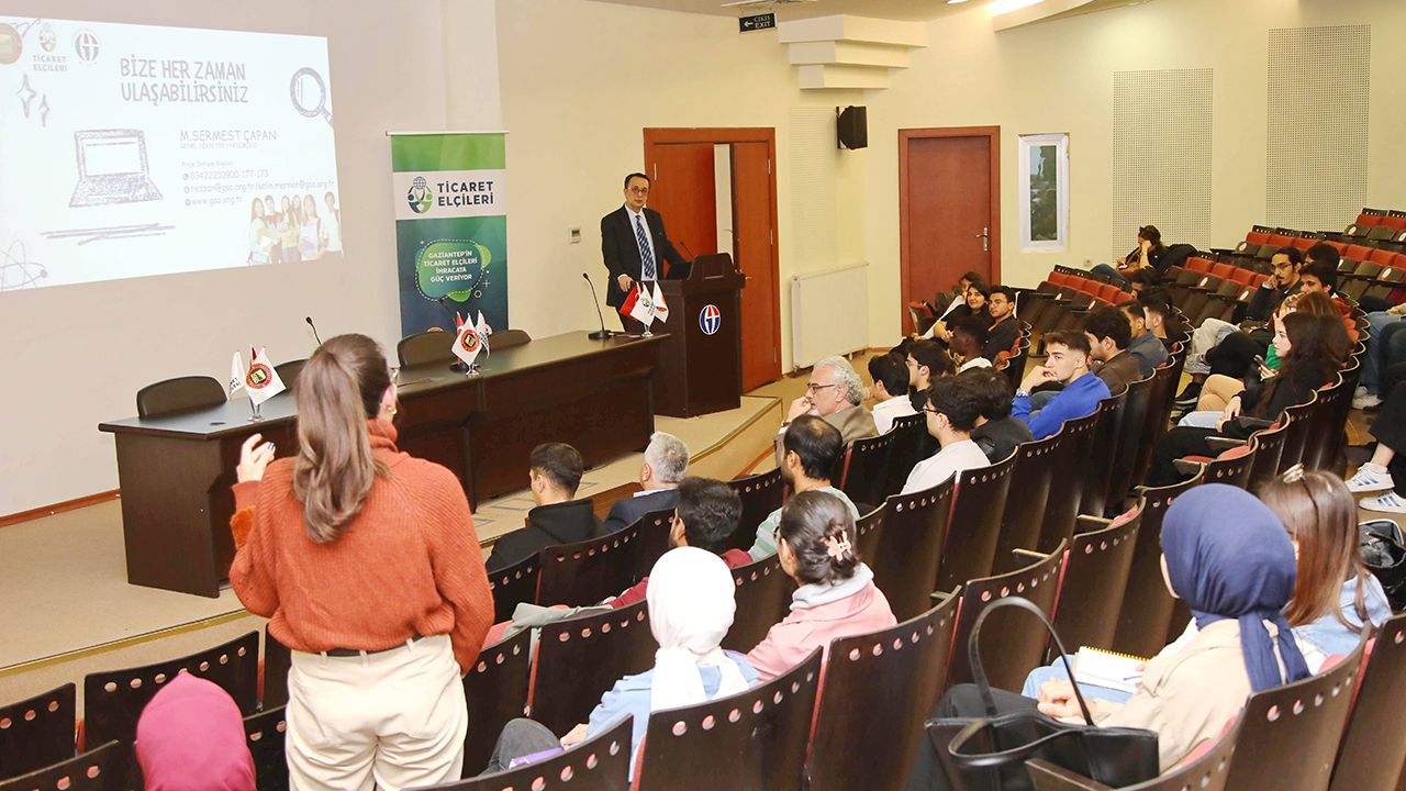 Gaziantep Üniversitesi ile Gaziantep Sanayi Odası iş birliğinde düzenlenen toplantının açılışında konuşan GSO Genel Sekreter Yardımcısı M. Sermest Çapan, Ticaret Elçileri Projesi’nin önemine değinerek proje hakkında katılımcılara bilgi verdi. Çapan, projenin 2019 yılından bu yana başarıyla sürdürüldüğünü belirterek, Gaziantep Üniversitesi’nde öğrenim gören yabancı uyruklu öğrencilerin, sanayi kuruluşlarıyla iş birliği içinde ülkeleriyle olan ticari ilişkilerin gelişmesine önemli katkılar sağladığını ifade etti.