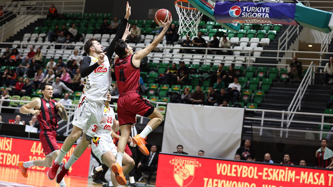 Geçen hafta en yakın takipçisi Konya Büyükşehir Belediyespor karşısında aldığı galibiyet ile önemli iş başaran Gaziantep Basketbol, önceki gün İzmir deplasmanında konuk olduğıu Göztepe'yi ise 65-5 mağlup etti. İlk yarıda zaman, zaman geriye düşen ve çekişmeli geçen maçta kırmızı-siyahlı ekibimiz devreyi 34-38 önde kapattı.